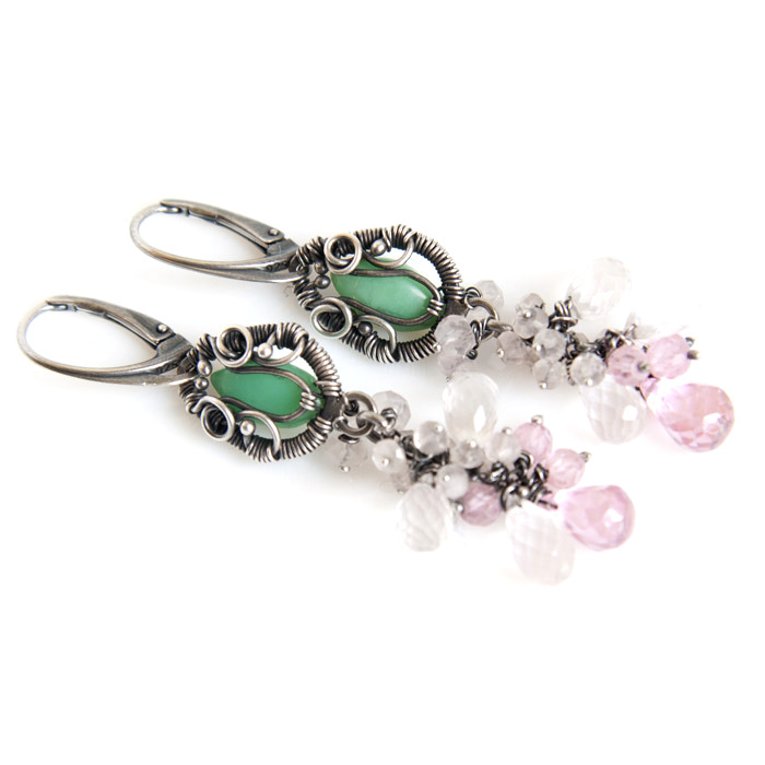 Użyte minerały to chryzopraz, kwarc różowy oraz cyrkon.